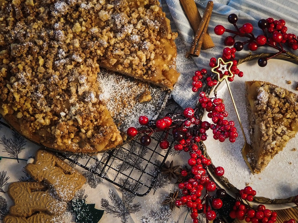 Apfelkuchen for the win! Es ist Herbst – die ersten Blätter werden rot – orange – gelb und es gibt nichts besseres, als nach einem langen Sonntagsspaziergang ein warmes Stück Apfelkuchen zu essen. Da läuft mir ja beim schreiben schon das Wasser im Mund zusammen. Apfelkuchen kann man mit allen möglichen Zutaten aufpäppeln und meiner Meinung nach, passen Walnüsse und Spekulatius perfekt dazu.